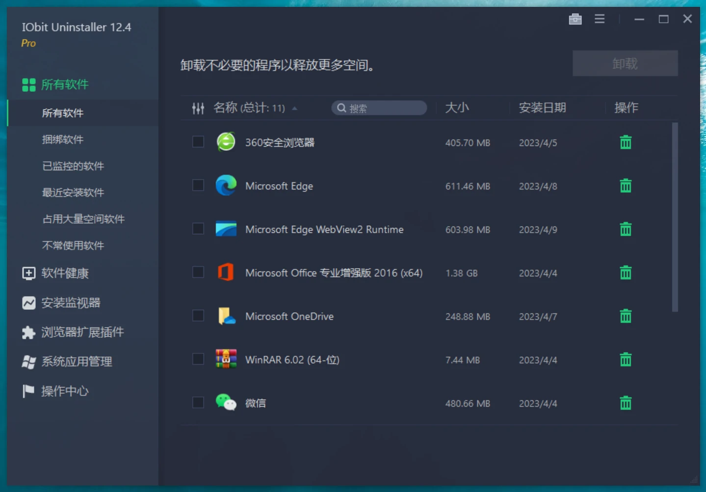 3. 批量卸载:支持一次性批量卸载多个软件。