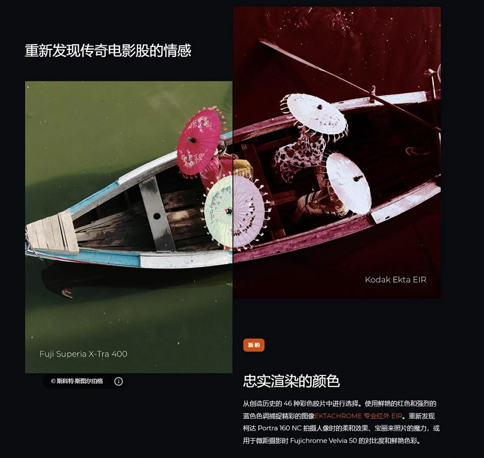 胶片模拟:包含超过80种不同的经典胶片效果,包括经典彩色胶片、黑白胶片以及特殊效果的胶片。