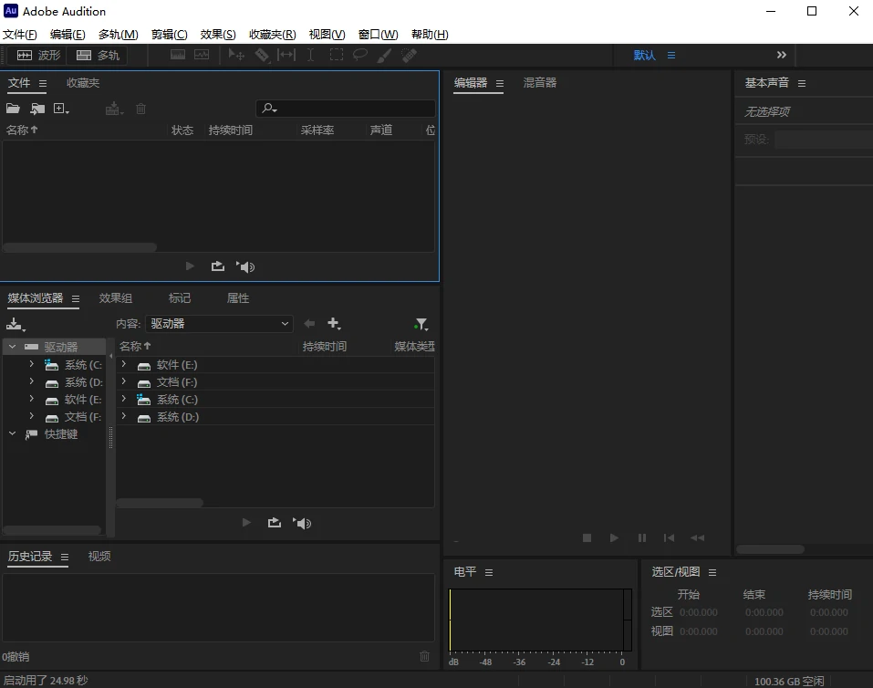 Adobe Audition(简称AU)音频录制、编辑和混合软件。Audition是业界最佳的数字音频编辑软件,专业声音剪辑软件,强大的音轨处理软件。具有音频录制、音频编辑、音频混合、音频降噪、设计音效、多轨混音、母带处理、现场调音、编辑视频音轨、音频转码等功能,支持频谱编辑工具自动语音对齐、降噪工具和自动响度纠正,支持多音轨多声道音频及多种音频特效与音频格式,提高音频质量和音频编辑整体效率。