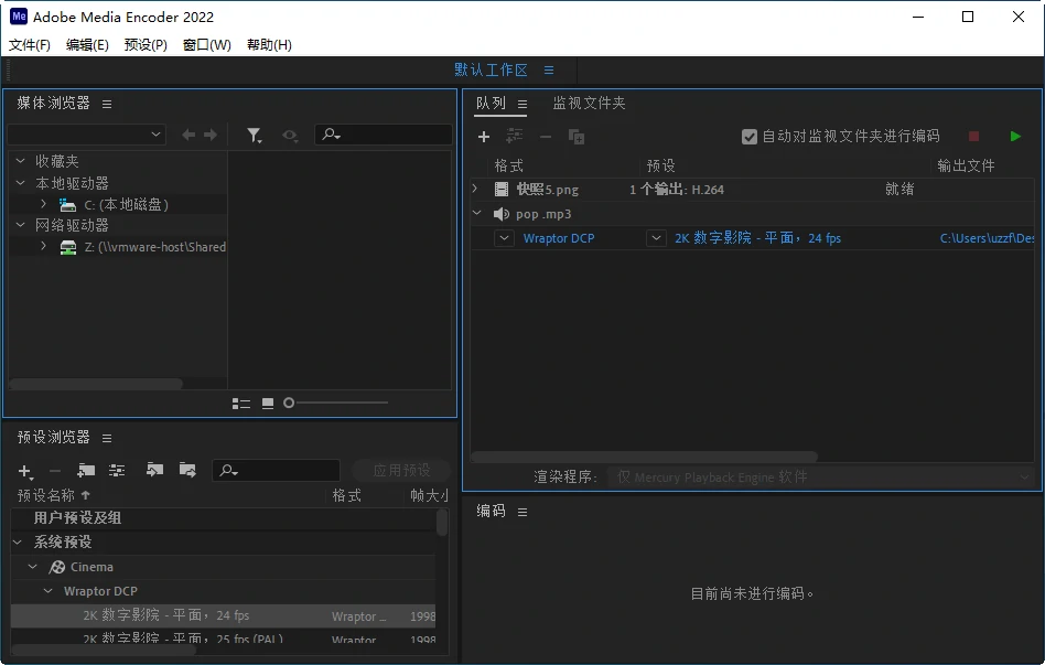 Adobe Media Encoder 2022是一款功能强大的音频、视频转码工具,收录、转码、创建代理和输出您可以想象的几乎任何格式。使用预设、Watch Folders 和 Destination Publishing 自动执行工作流程。使用 Time Tuner 无痕调整持续时间,应用 LUT 和 Loudness 校正而无需重新打开项目。与 Adobe Premiere Pro、After Effects 和其他应用程序的紧密集成提供了无缝的工作流程。