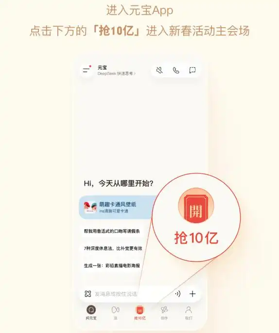 2月1日至17日,腾讯元宝App开启10亿红包活动,玩法多样,用户分享红包需好友复制口令下载App领取。此前腾讯还布局AI社交新玩法,内测“元宝派”。此外,百度、字节跳动、阿里也纷纷推出AI红包及营销活动。专家称,与十年前不同,今年是争夺AI用户之战,最终胜负在于产品核心能力,而非单纯流量。