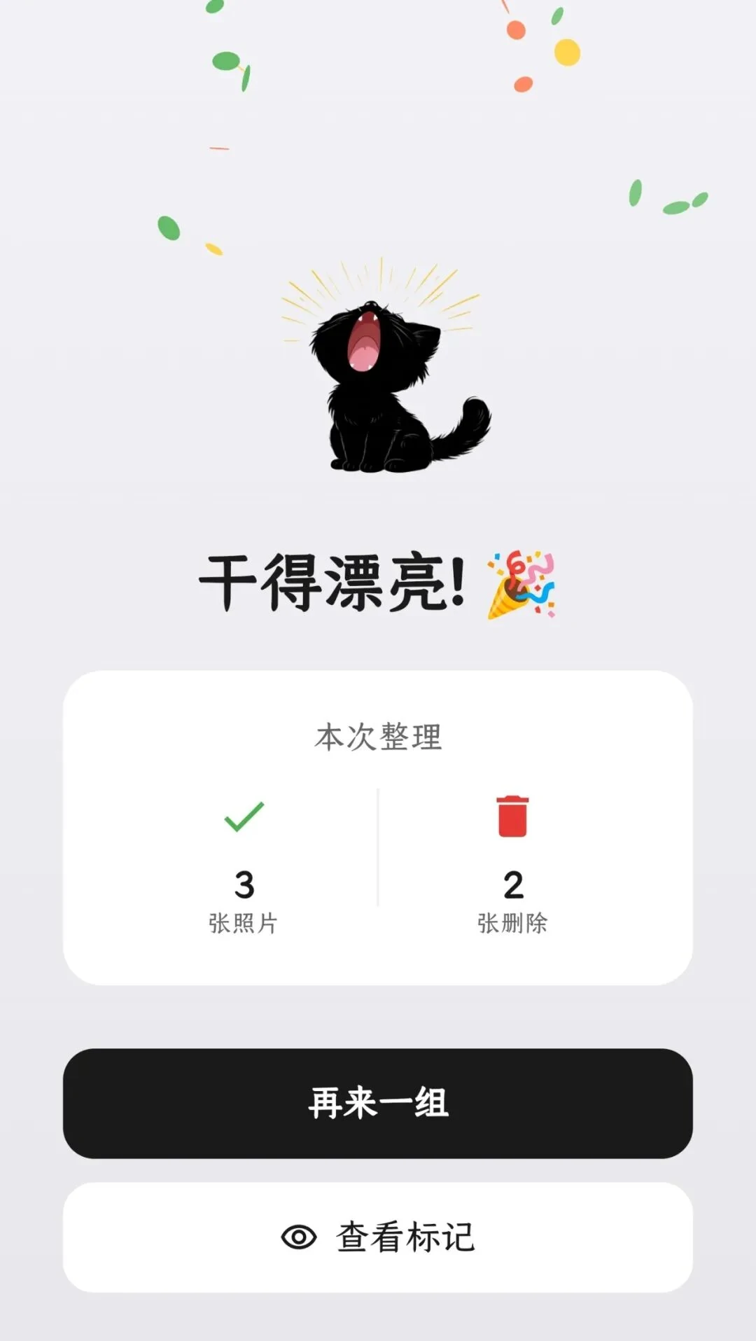 小猫咪彩蛋:可爱的 Tabula 小黑猫陪伴你整理照片,完成任务更有庆祝动画