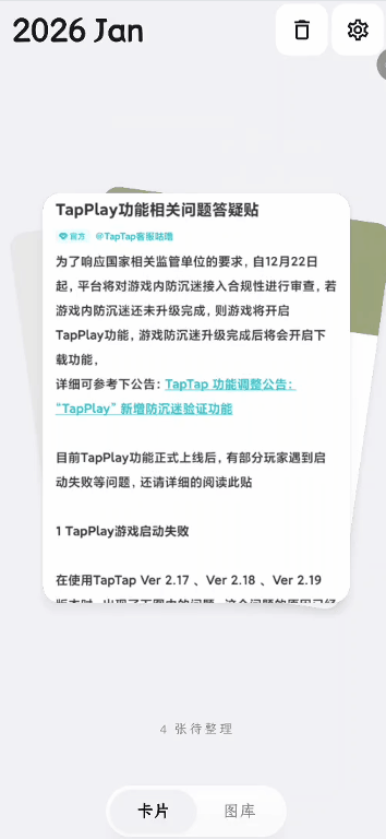 卡片式整理:Tinder 风格的卡片交互,左右滑动保留、上滑删除、下滑归类,单手即可轻松操作