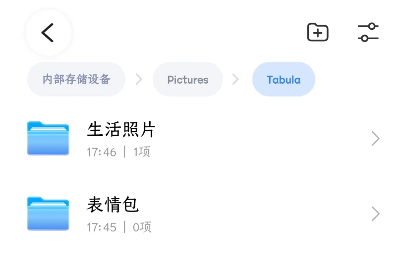 这个相册是同步到软件之外的,它会在系统的相册路径下生成一个 Tabula 的文件夹,再在这下面分类照片,它会直接复制一份到这里。