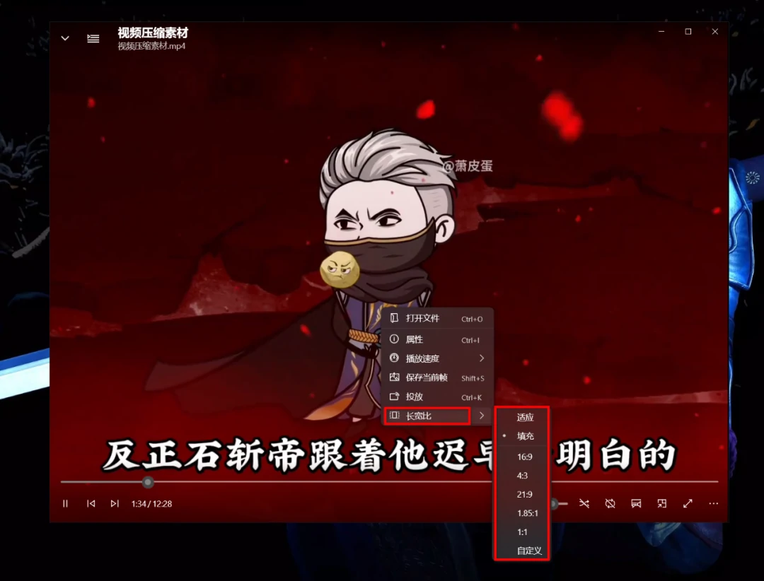 通过数字键快速调整播放窗口大小: