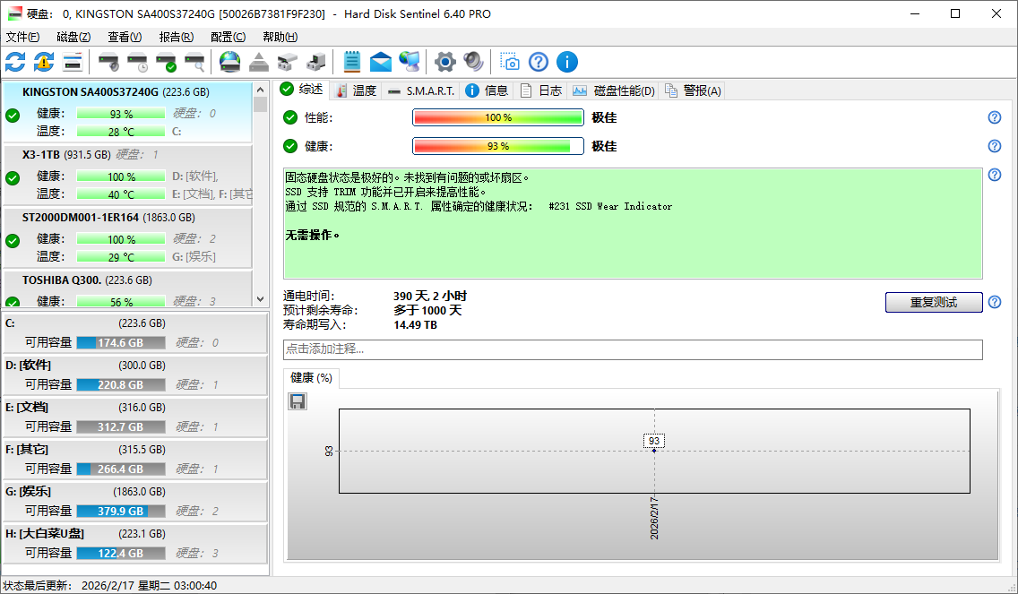 硬盘监控:能够实时监测硬盘的状态和健康状况,包括温度、S.M.A.R.T.(自动诊断技术报告)、传输速度和错误率等。