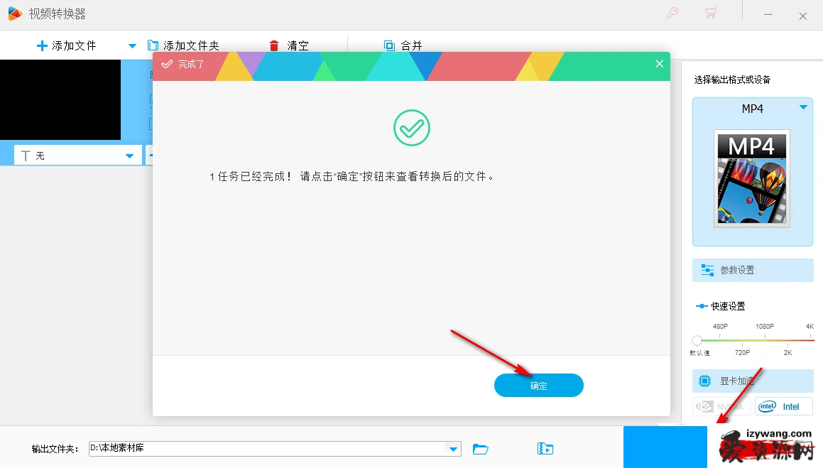 7、第七步,确定好保存位置之后,我们点击“转换”选项,然后等待转换过程结束出现弹框,在弹框中点击“确定”选项就能查看转换后的文件了。