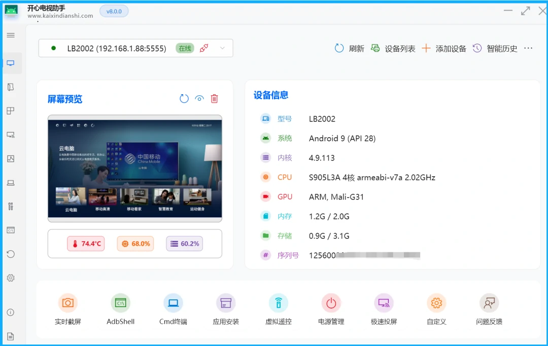 图形化操作,小白也能轻松管理智能电视、电视盒子、投影仪等安卓设备;