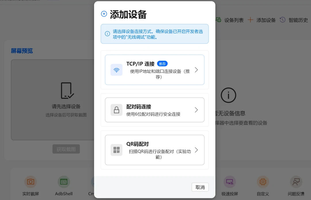 修复了部分场景下 首页 无法打开ADBShell、Cmd终端的问题。