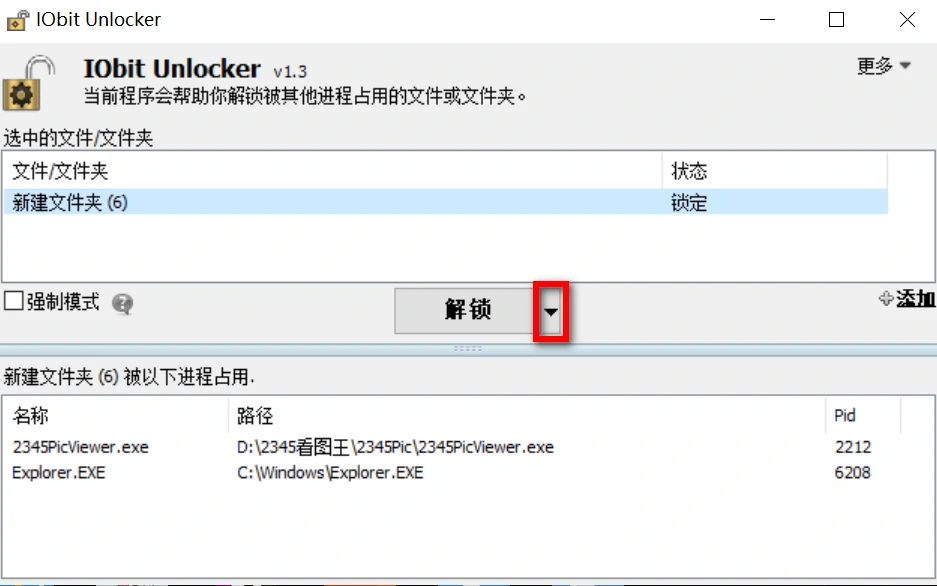 对于普通模式下无法解锁的文件/文件夹,可勾选 “强制模式”。此模式会终止所有相关进程,以更强制的方式解锁,但一般建议在必要时使用,因为可能会有一定风险,如系统文件被锁定时强行解锁可能导致系统不稳定或错误。