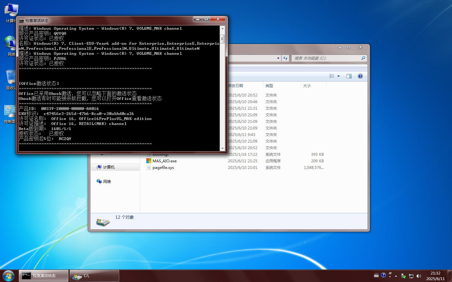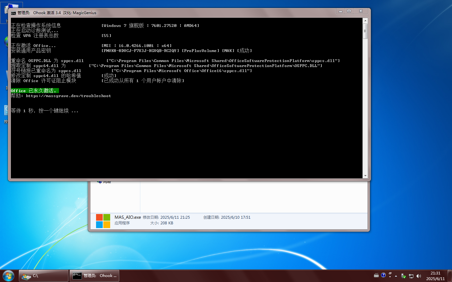 MAS_added.exe /k /s /v,使用KMS静默模式激活WIN及OFFICE,但显示最终激活结果!