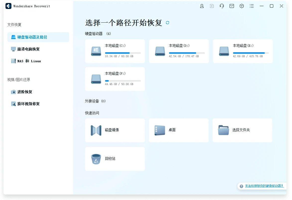我们很抱歉的说如果硬盘无法检测或由计算机读取,则Wondershare Recoverit不能从中找到它或恢复数据。你需要发送硬盘驱动器修复。