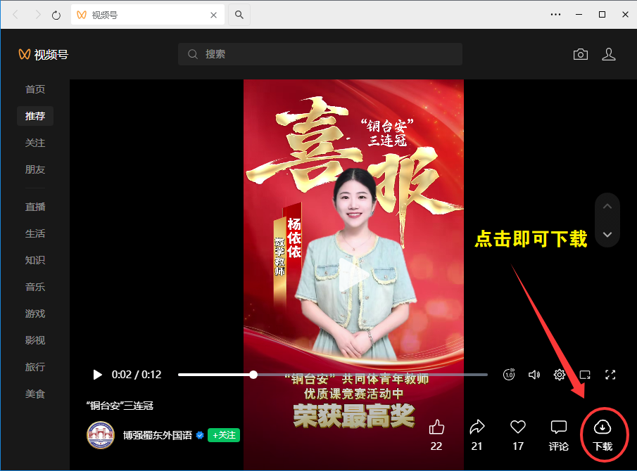 2.此时可以打开视频号页面正常下载了(默认会在操作按钮一栏插入下载按钮,点击即可下载)