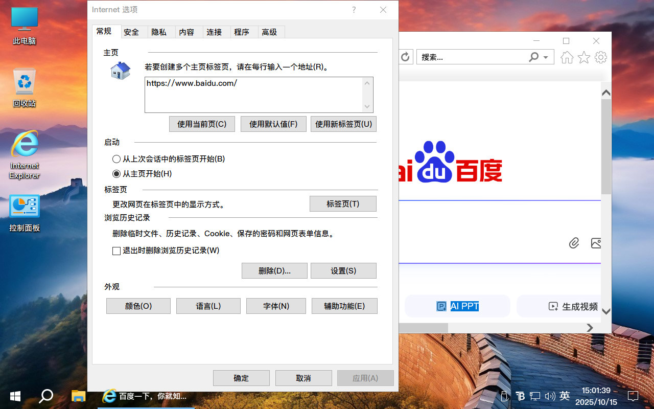 IE主页默认设置为百度,原版是先打开微软再跳转百度;